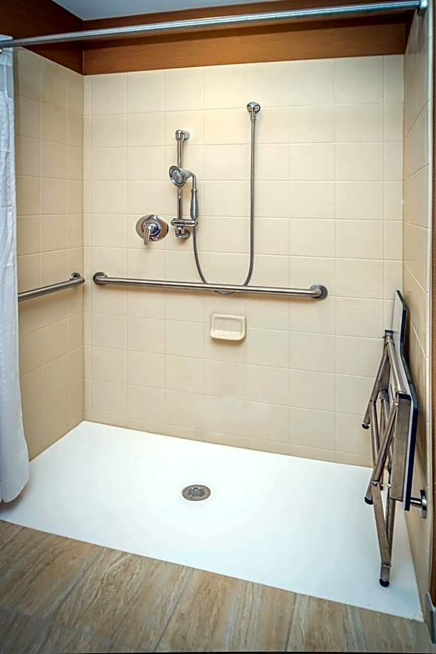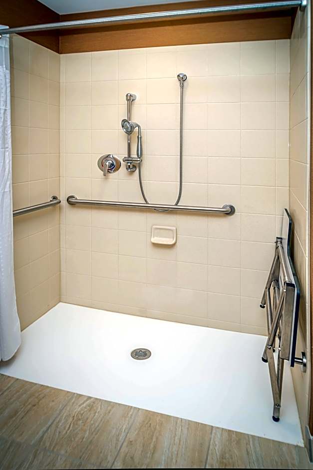 This room features a flat-screen TV, a microwave and a small refrigerator. An private bathroom is also included.